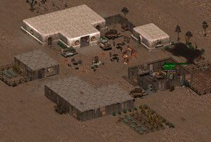 A private farm location with many options. It's like a base, but it is not tied to a faction. It can be purchased in Modoc for 300k Caps and appears on The World map for whomever buys it. Its location is somewhat random, usually near Modoc, Vault City or Redding. There is a lot of work to do at the farm, with multiple renovation and upgrade options. You bring resources to it, add them to the farm's inventory, plant crops, cycle the farm's productivity, renovate to "unlock" features, generate wealth for the farm's treasury (expressed in old-fashioned dollars), spend that wealth on various options, maintain the farm's health, and more, all via dialogue with the NPCs there.