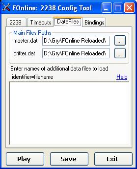 This utility provides GUI for editting configuration in FOnline2238.cfg. FO2238Config.exe deals with other Configuration settings that are not included in FOConfig.exe