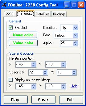 This utility provides GUI for editting configuration in [[FOnline2238.cfg]]. | This utility provides GUI for editting configuration in [[FOnline2238.cfg]]. FO2238Config.exe deals with other [[Configuration]] settings that are not included in [[FOConfig.exe]]<br> | ||