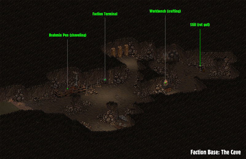 | Notes | Not shown here is the outside map with the cave entrance. There are two, slightly different version of this base. The alternate one has 2 tents outside. | ||