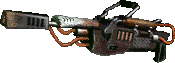 | A Flambe 450 model flamethrower, varmiter variation. Fires a short spray of extremely hot, flamable liquid. Requires specialized fuel to work properly. This model has been modified to fire a hotter mixture which causes greater combustibility. | ||